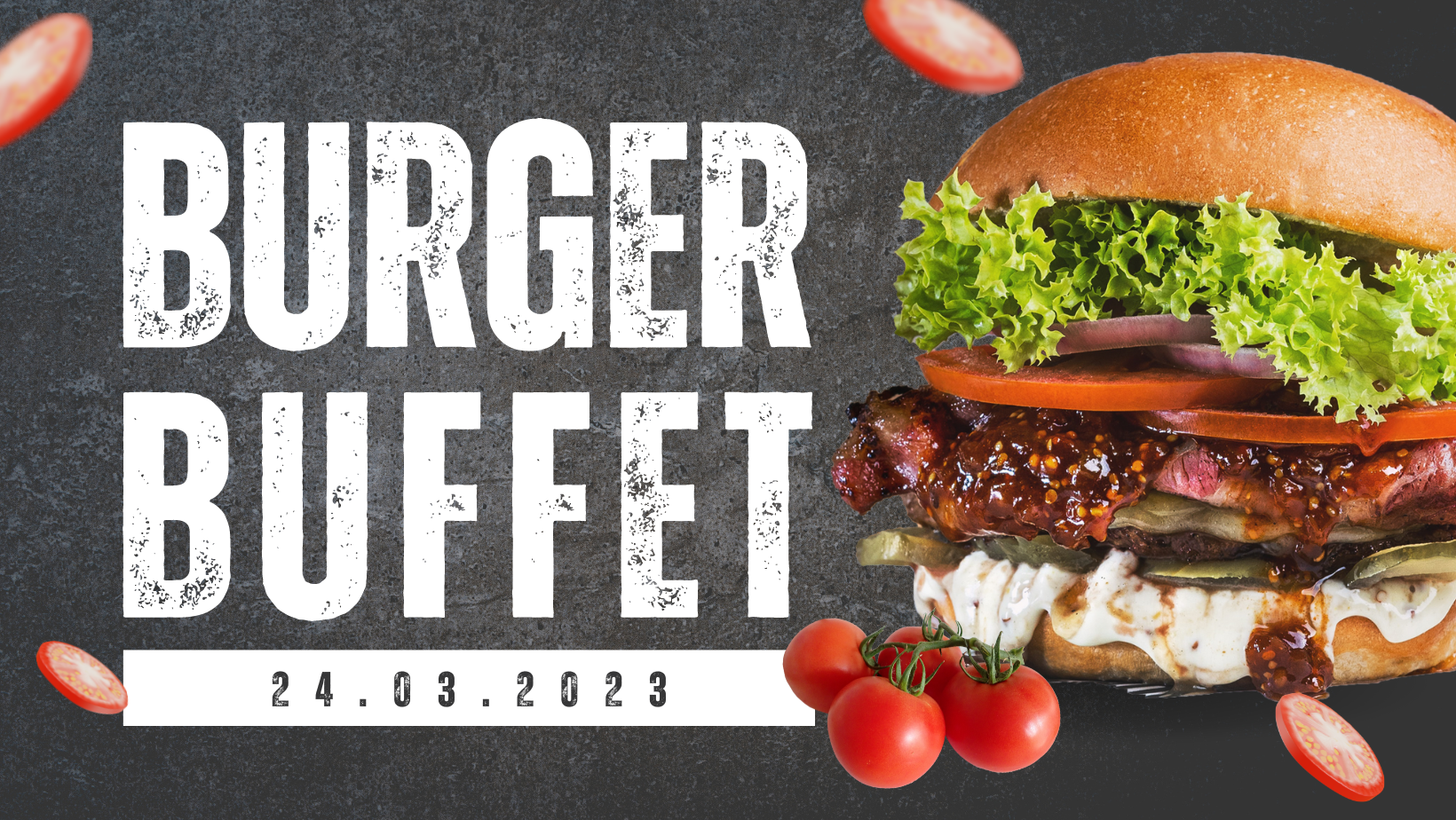 Sie wünschen sich einen Burger ganz nach Ihren Vorstellungen? Dann verpassen Sie nicht unser Mega-Burgerbuffet. Ob Hacksteak-, Geflügel- oder auch Veggie-Burger; mit Zwiebeln, Bacon, Käse oder aber ohne – Sie entscheiden ganz nach Ihrem Geschmack. Dazu reichen wir Pommes, Wedges und Salat. Natürlich darf eine süße Leckerei zum Abschluss nicht fehlen.